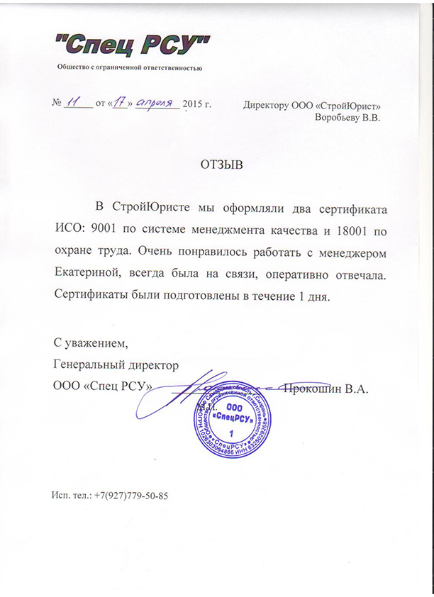 Отзывы клиентов "СтройЮрист" по ISO в Якутске