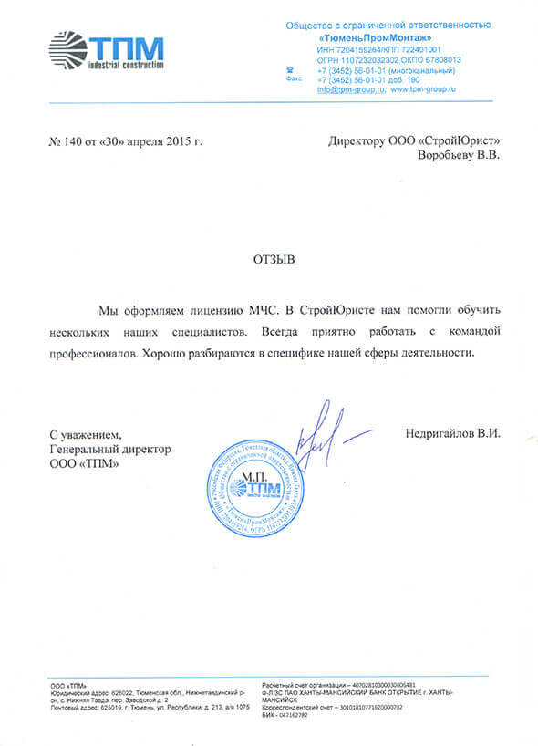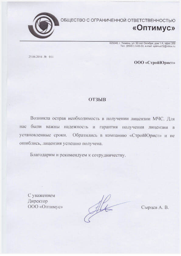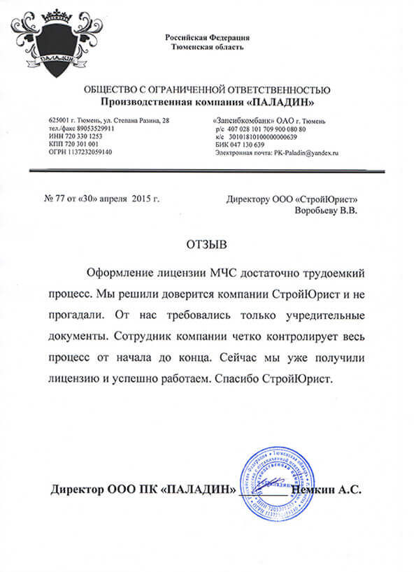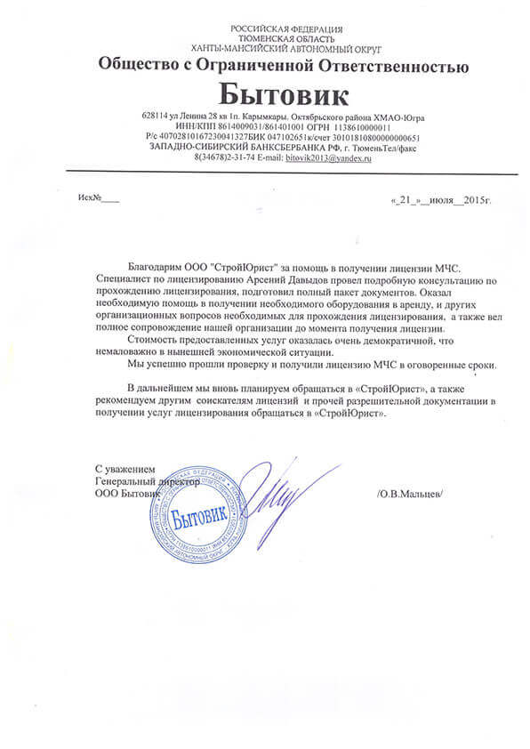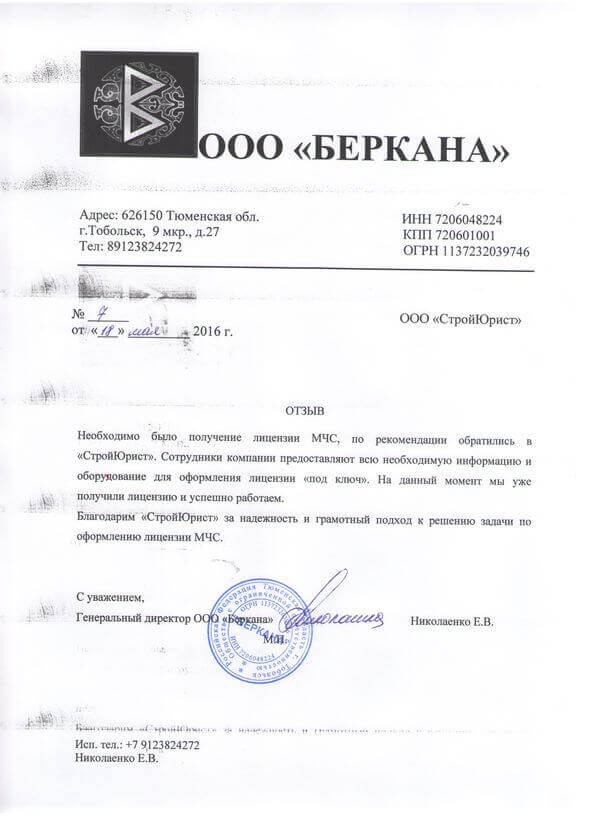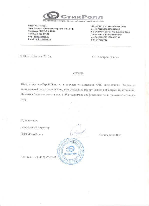 Отзывы клиентов "СтройЮрист" по лицензированию МЧС в Якутске