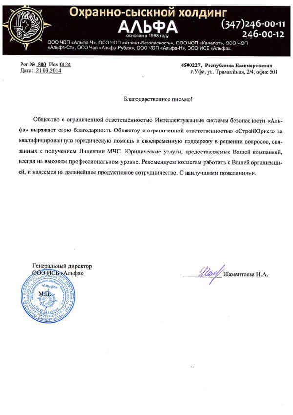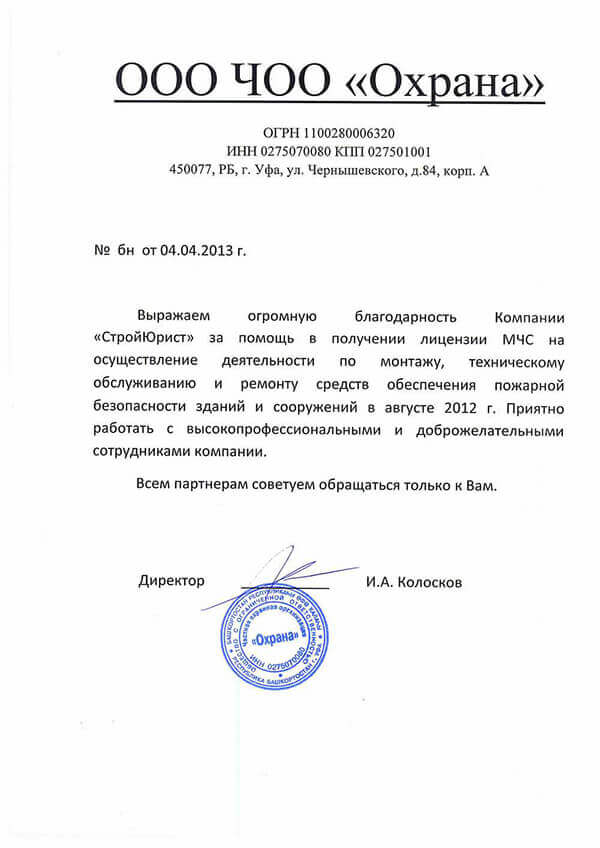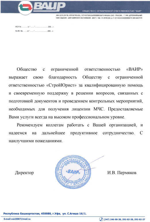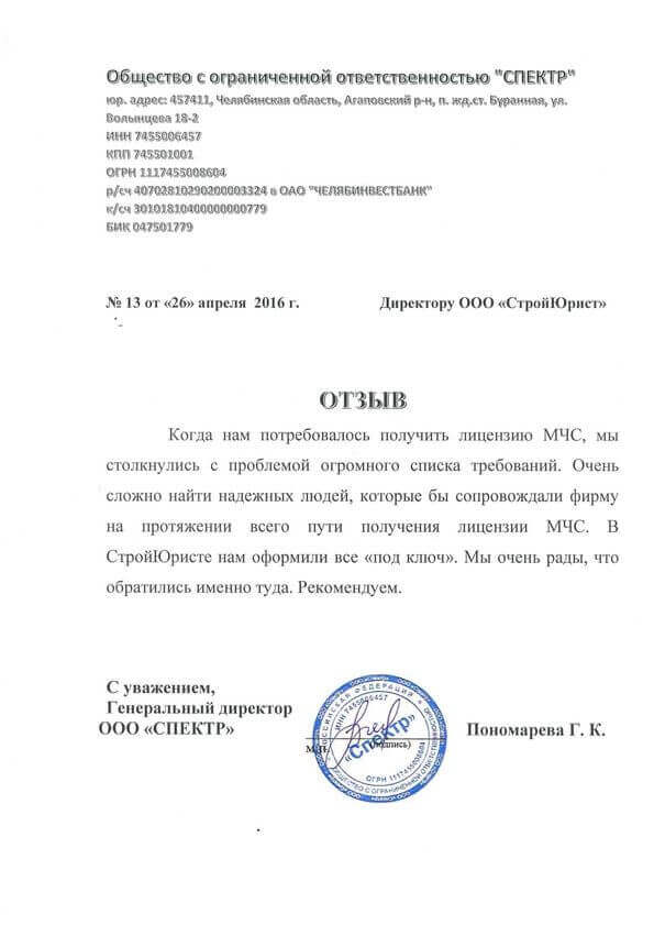 Отзывы клиентов "СтройЮрист" по лицензированию МЧС в Якутске