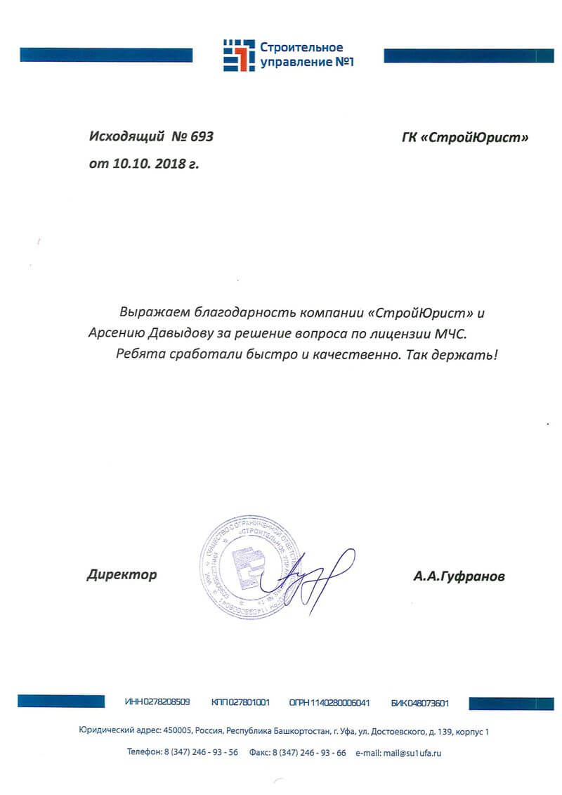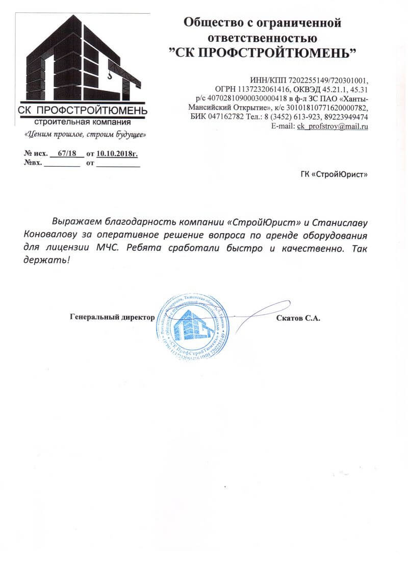 Отзывы клиентов "СтройЮрист" по лицензированию МЧС в Якутске