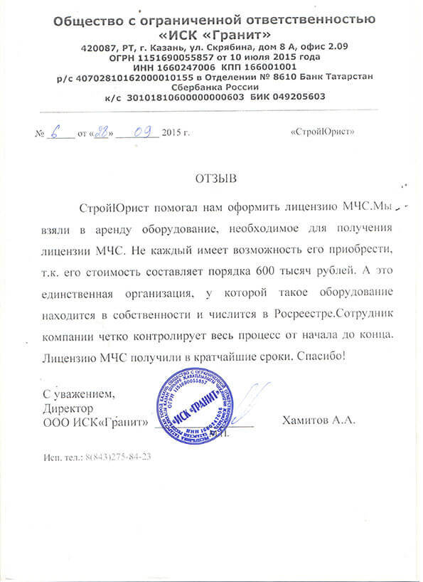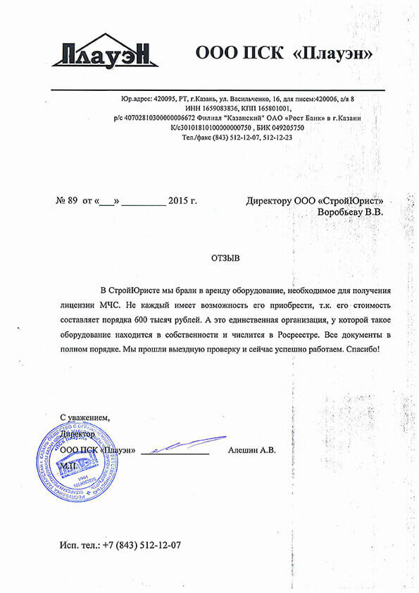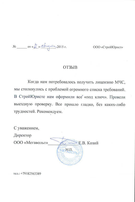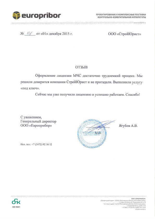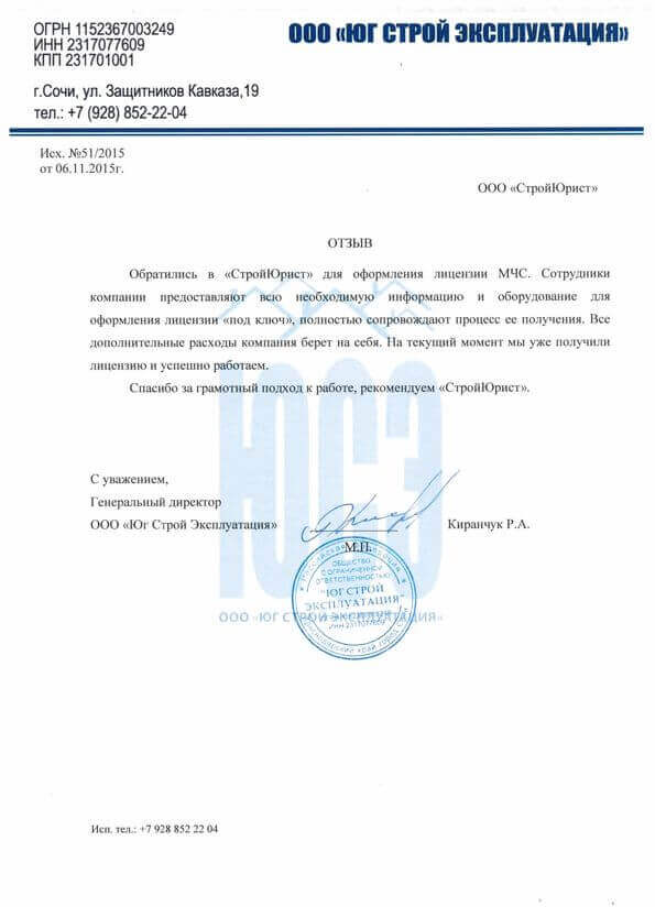 Отзывы клиентов "СтройЮрист" по лицензированию МЧС в Якутске