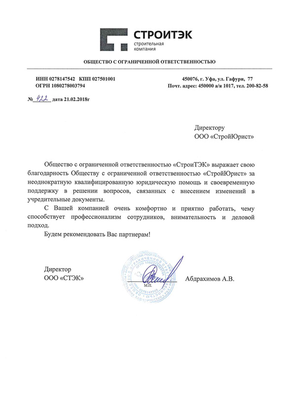 Отзывы клиентов "СтройЮрист" по регистрации фирм в Якутске
